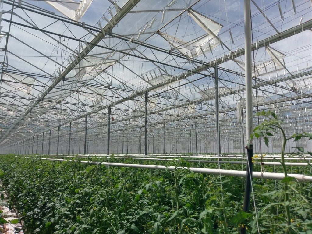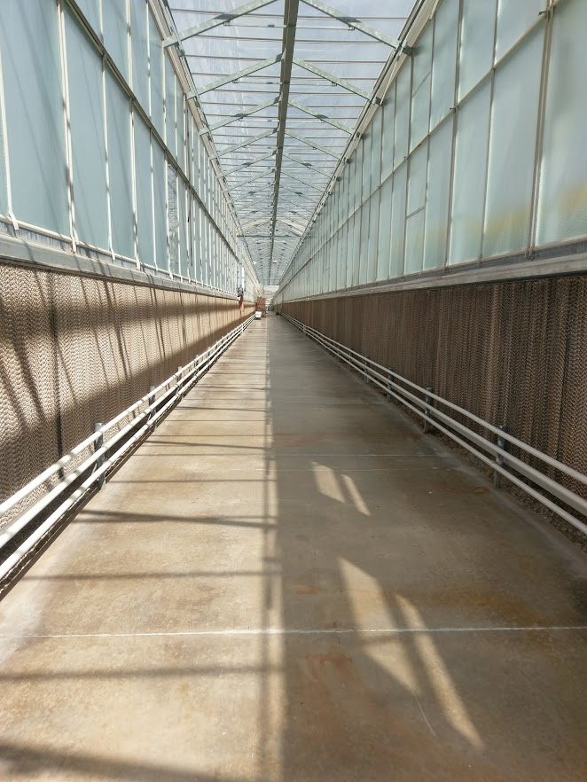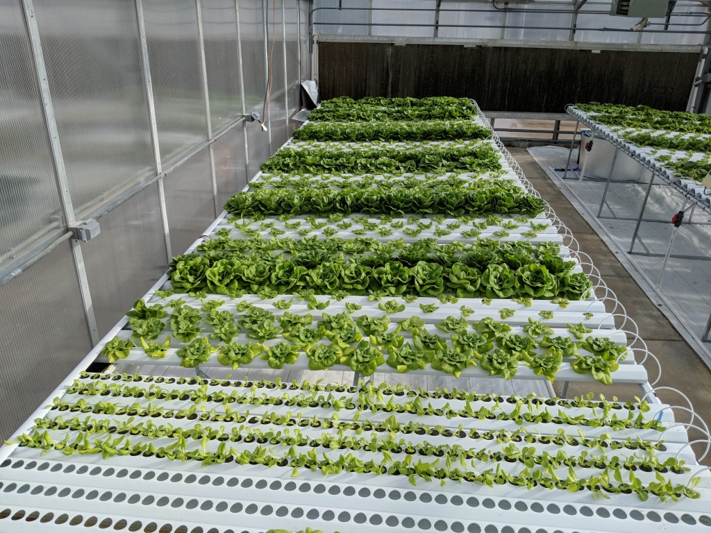 A view of all the entire greenhouse including the seeding station, nursery channels, and production area.