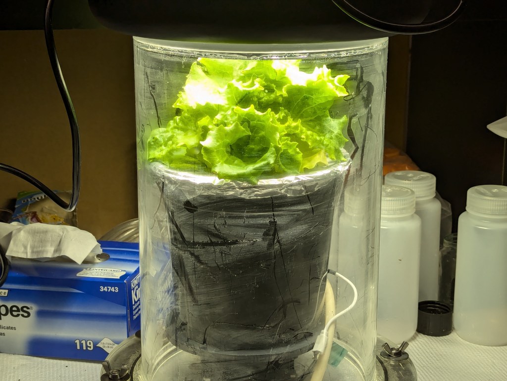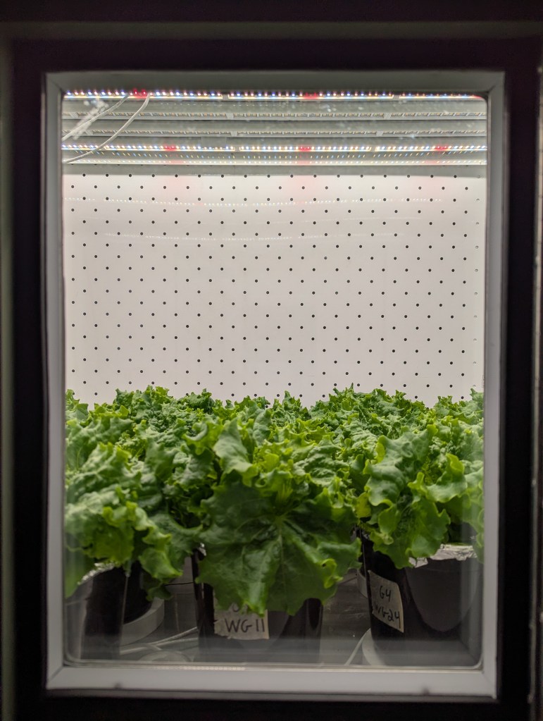 Waldmanns’ Dark Green lettuce as viewed through the growth chamber window.
