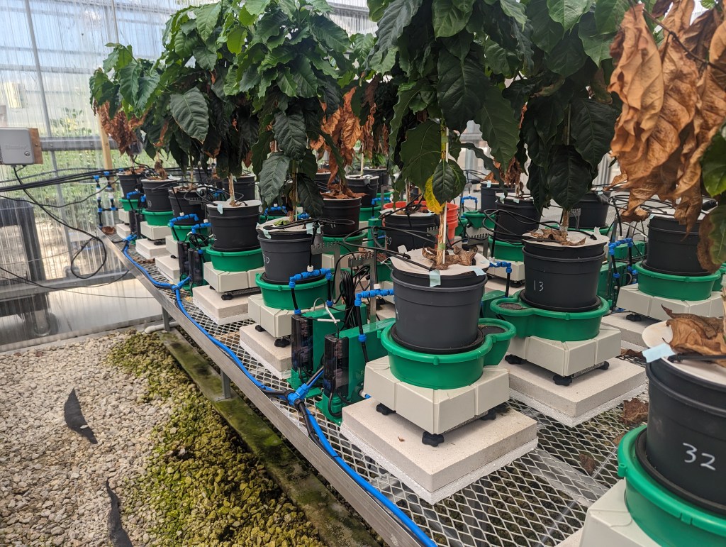 A greenhouse equipped with “smart” pots that track soil pH, nutrient absorption, and transpiration of each plant individually.