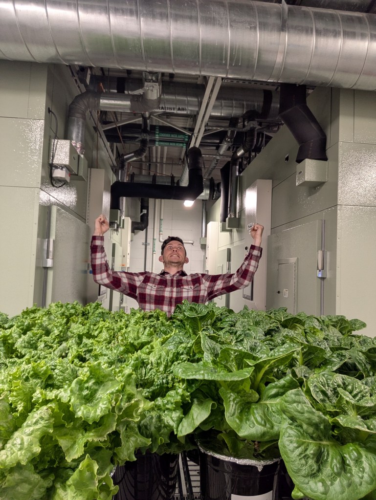Donald Coon with his lettuce at University of Florida’s growth chamber facility.